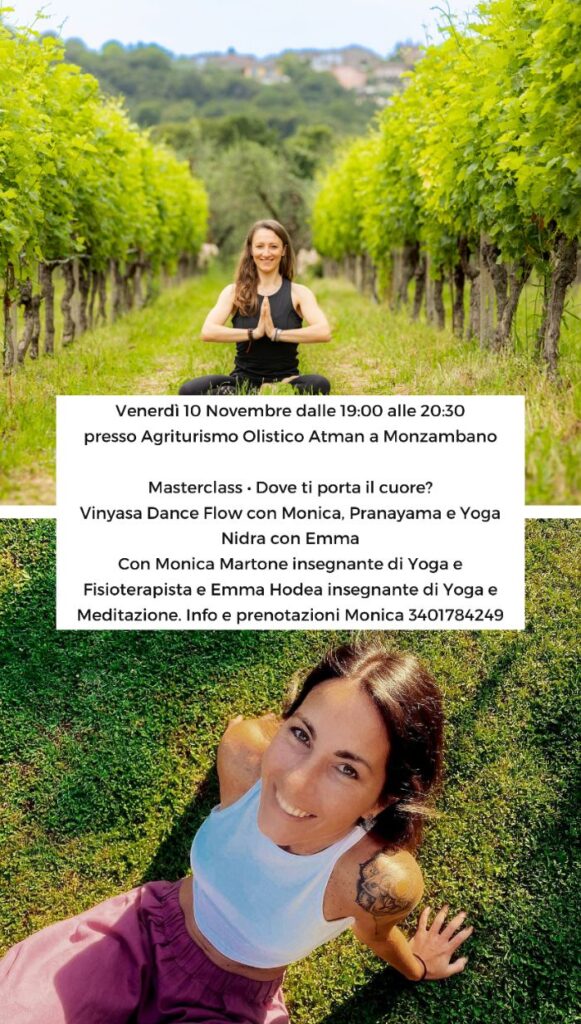 Con Emma e Deborah Saponaro che si occupa da più di 15 anni di yoga ed è stata allieva diretta della fondatrice del metodo Yoga Somatics, Ateeka. Lo yoga e la meditazione col tempo sono state arricchite dall’Arteterapia e dalla Mindfulness con il Maestro Ola Borud.